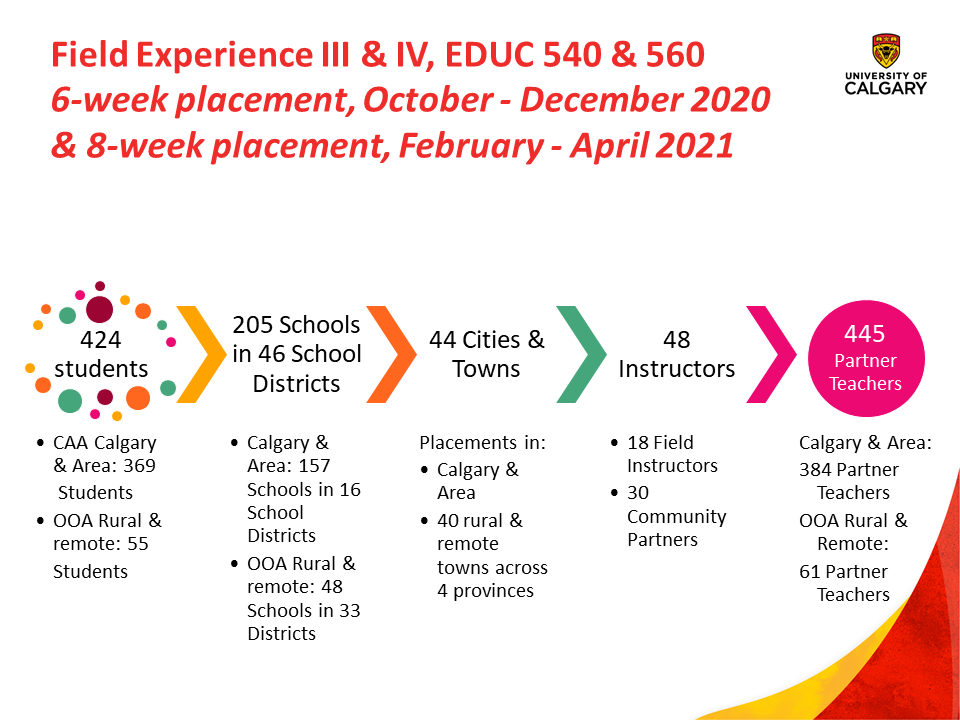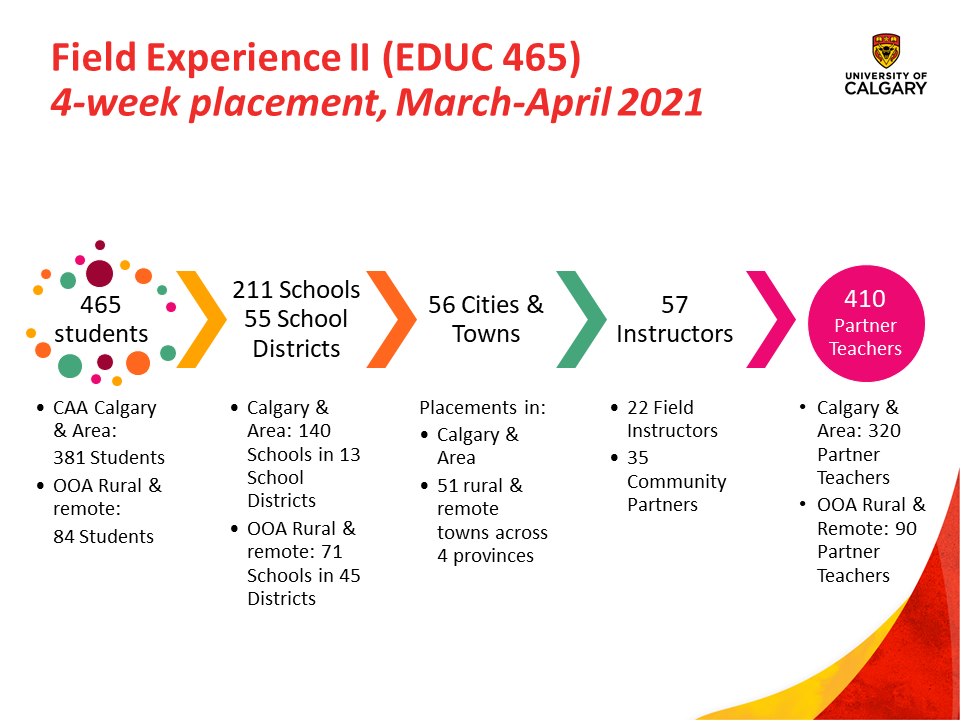 Bachelor of Education students undertake 20 weeks of in-classroom practicum, or field experience, organized into four, cohort-based courses: EDUC 440, EDUC 465, EDUC 540, and EDUC 560.